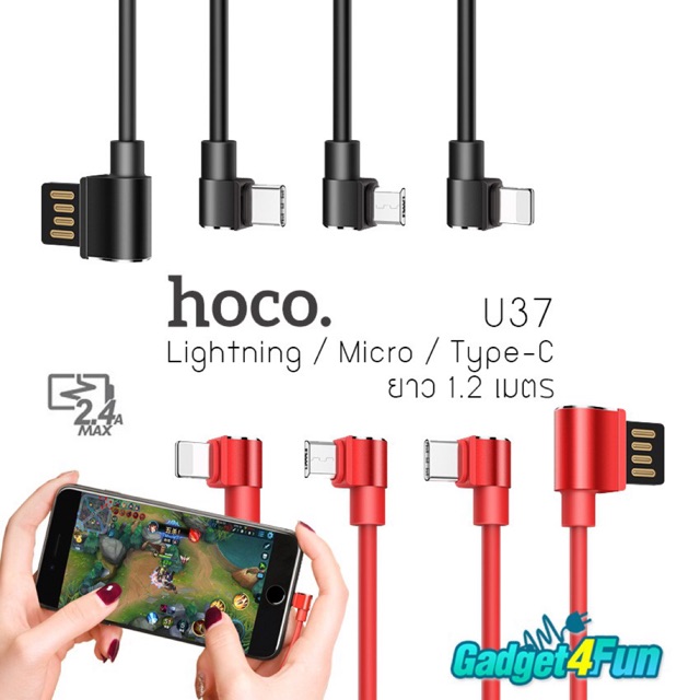 - ชื่อสินค้า แท้ 100% Hoco U37 สายชาร์จเล่นเกมส์ 1.2 เมตร Long Roam Charger Data Cable สำหรับ Lightning / Micro /