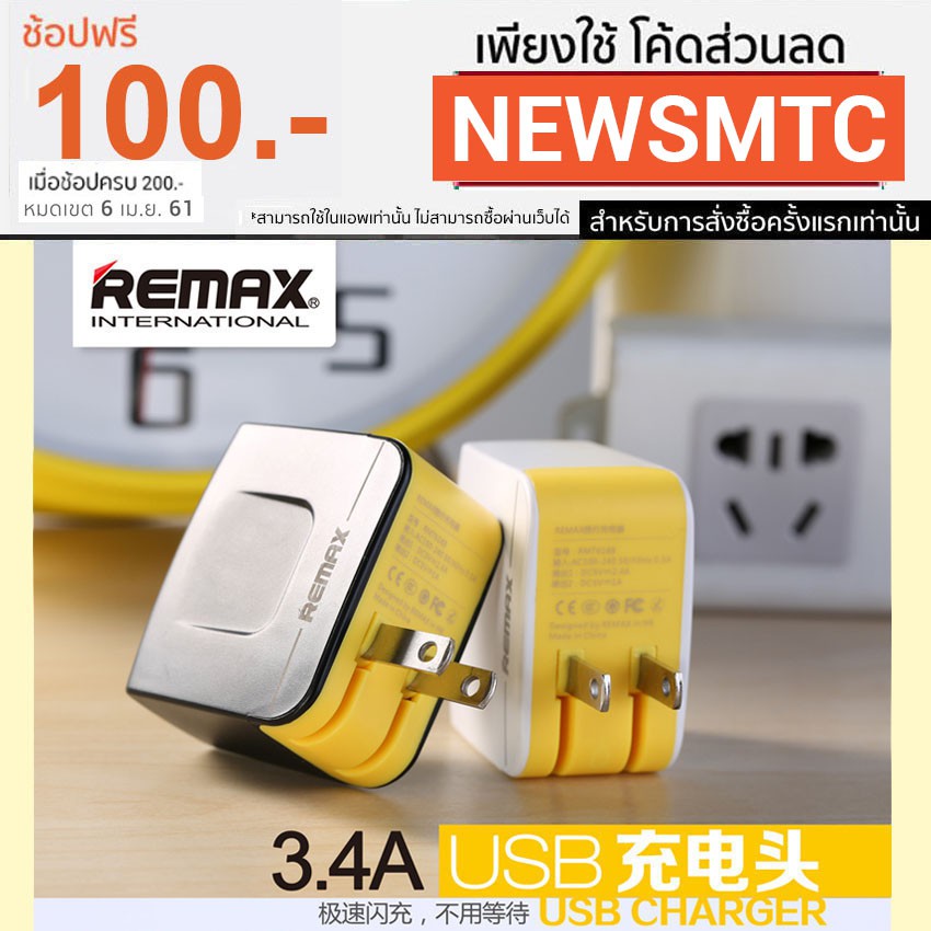 ราคาโปรโมชั่น!! แท้ 100% Remax Charger Adapter หัวชาร์จ USB 2 ช่อง 3.4A คุ้มไปเลยสุดๆ