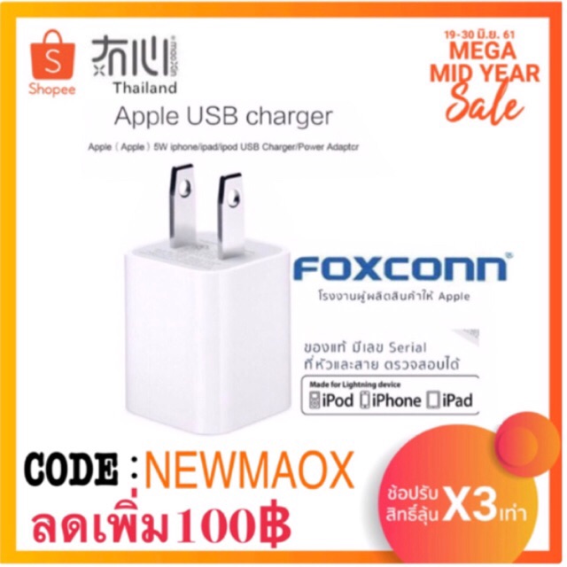 พบกับ Foxconn หัวชาร์จไอโฟน 5V-1A 5W ของแท้ 100% foxconn USB Adaptor ใช้ได้และทุกรุ่น สินค้าใหม่ สินค้าดี ไม่มีที่ไหน ที่นี่ที่เดียว ราคากันเอง แถมยังมีส่วนลดให้ด้วย ลดแล้วลดอีก ไม่เคยมี นานทีมีครั้ง เข้ามาดูกันเยอะๆๆก่อนการตัดสินใจ คุณสามารถเทียบราคากันก่อนได้ ไม่ถูกไม่ซื้อ คุณภาพไม่ต้องพูดถึง รีวิวจากผู้เคยใช้จริง ไม่โดนโกง การจัดส่งก็สะดวกรวดเร็วทันใจ รีบตัดสินใจเลยค่ะ ถ้าสินค้าราไม่ดี เราไม่แนะนำนะค่ะ