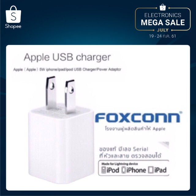 Foxconn หัวชาร์จไอโฟน 5V-1A 5W ของแท้ 100%