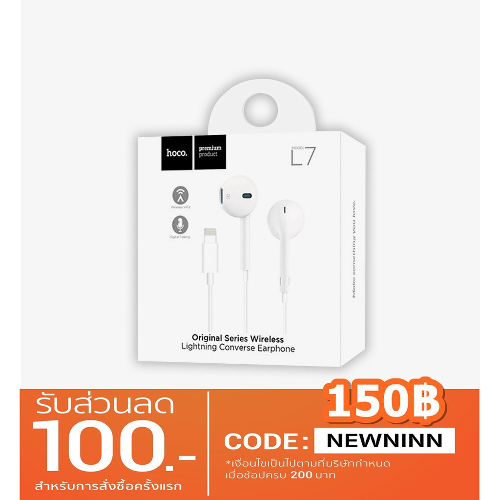 - ถูกที่สุด แท้% หูฟังHoco L7 apple Original series lightning bluetooth หูฟังไอโฟน7,7plus,8,X ราคาถูก เสียงดี ซื้อเลยตอนนี้