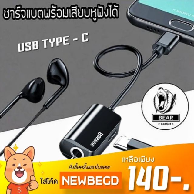 - ชื่อสินค้า HOT ราคาดี Baseus L40 สายแปลง USB - Type C + หูฟัง 3.5 + ชาร์จไฟ 2 in 1 ชาร์จเเบตพร้อมเสียบหูฟั