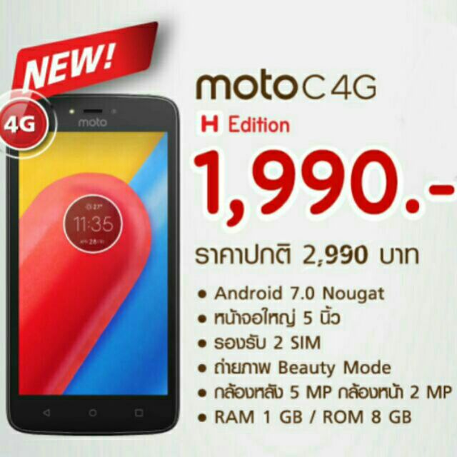 - Motorola Moto C 4G H Edition 5" ใส่ได้ทุกระบบ (แถมเคส+ฟิล์ม) ซื้อที่ไหน