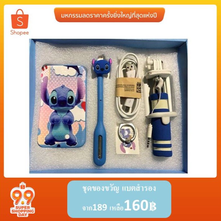 บริการจัดส่งทั่วประเทศ สั่งซื้อผ่านเน็ต รอรับ set 5 ชิ้น ชุดของขวัญ แบตสำรอง ไม้เซลฟี่ สายชาร์จ หูฟัง ไอริง ที่บ้านได้เลย