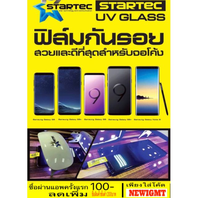 เช็คราคาและรายละเอียด ฟิล์มกระจกกาว UV S9,S9+s8,S8+,Note8 Startec ติดง่ายภาพสวยคมชัด ติดแน่นไม่มีฟองอากาศ ดูดี หรูหรา ใส่ไ