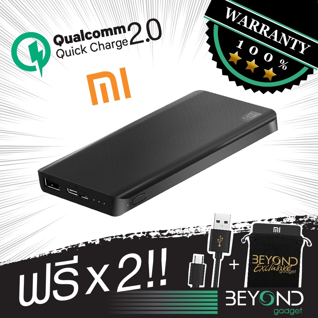 สินค้าเหลือแต่สีขาวนะจ๊ะตอนนี้ หากสั่งเข้ามา ทางร้านส่งสีขาวให้น้า !! PAYDAY !! สิ้นเดือน ไม่สิ้นใจ กับโปรแรง ลดสูงสุด 70% ลดเพิ่ม 100- ใส่โค้ด NEWAUKE ตอนชำระ สำหรับลูกค้าใหม่สั่งซื้อครั้งแรกผ่านแอพมือถือ Shopee ฟรี !! โค้ดลดค่าส่ง !! ส่งเร็ว ส่งไว ส่งด่วนถึงวันถัดไป แอดไลน์ @beyondgadget [มี@ ด้วย] รับโค้ด !! ราคานี้ ถึง 6 ต.ค. เท่านั้น ! ลดจริง ไม่พุดเยอะ เจ็บคอ !! ของแท้ 100% ยินดีคืนเงิน 3 เท่า เตรียมส่งด่วนใน 1 วัน !! ฐานลูกค้าเยอะที่สุด รีวิวแน่น Package/กล่องสินค้าแท้ แบบเดียวกับที่จำหน่ายบน Amazon/Ebay รับประกัน 18 เดือน ศูนย์เรา เปลี่ยนตัวใหม่ ไม่รอส่งซ่อม ฟรี ซอง Exclusive กันรอยพาวเวอร์แบงค์ highest-grade battery cells เบากว่าพาวเวอร์ทั่วไปในตลาด 10% !! ZMI PowerPack 10K, the Smallest and Lightest 10000mAh Battery Pack Fast Charging Portable Charger Ultra-Compact Power Bank External Battery for iPhone iPad Samsung... มีเวลาในชีวิตเพิ่มขึ้นชัดเจน หลังจากเริ่มใช้เทคโนโลยี Quick Charge 2.0 ชาร์จเร็วกว่าแบตสำรองทั่วไปถึง 75% พร้อมนวัตกรรมฉลาดเลือกที่จะคำนวนจ่ายกำลังไฟมากที่สุดให้แต่ละอุปกรณ์ที่นำมาเสียบ 3 Charging Modes : 1. ชาร์จด่วน QC2.0 2. Normal ชาร์จปกติ 3. Low-Power Mode สามารถรีชาร์จไฟกลับเข้าแบตสำรอง สามารถรีชาร์จไฟกลับเข้าพาวเวอร์แบงค์ไวแบบชาร์จด่วน ด้วย QC2.0 เช่นกัน Qualcomm Quick Charge 2.0 Input ต่างจากรุ่นอื่นๆในตลาด ผ่านพอร์ต Type C และ Micro USB เวลาในการรีชาร์จไฟกลับพาวเวอร์แบงค์ 4.2 hrs with 18W QC fast charge plug; 6.2 hrs with 5V/2A plug like iPad plug; 11-12 hrs with 5V/1A plug like stock iPhone plug. สเปคสินค้า Model: QB810 Battery Type: Lithium-polymer cell Cell Capacity: 10,000 mAh 3.85V = 38.5Wh Operating Temperature: 32 to 113F (0 to 45C) Input Port Type: Micro-USB or USB-C Output Port Type: USB-A Input: (QC 2.0) 5V/2A, 9V/2A, 12V/1.5A Output: (QC 2.0) 5.1V/2.4A, 9V/1.6A, 12V/1.2A (Voltage/current levels supported by devices are automatically detected and adapted to.) Fast Charge Protocols Supported: QC 2.0, BC 1.2 Dimensions: 5 2.71 0.5 in (127 69 12.7 mm) Weight: 6.24 oz (177 g) Color: Black ในกล่องประกอบด้วย Xiaomi QB810 10000mAh Power Bank, Micro USB Cable (20cm) User Manual แถมฟรี ซองผ้า Exclsuvie การรับประกัน แอดไลน์ @beyondgadget (มี @ ด้วย)เพื่อรับสิทธิ์การรับประกัน Beyond Gadget Worry-Free Warranty 18-เดือน. หากมีปัญหาเปลี่ยนตัวใหม่ ไม่ส่งซ่อม ไม่ดราม่า !! และอัพเดท Flash Deal และส่วนลดพิเศษ ก่อนใคร !! โปรดอ่านก่อนสั่งนะคะ ตัดรอบสั่ง 10.00 น. ส่งวันเดียวกันเลย จันทร์-เสาร์ สินค้าแถม เช่น สาย ถูกจัดชุดมาแล้ว ไม่สามารถเปลี่ยนชนิดได้นะจ๊ะ หากสั่งสินค้าผิดรุ่น ผิดสี ทางร้านขอสงวนสิทธิ์ในการเปลี่ยนหรือคืน เช็คที่อยู่ก่อนสั่งนะจ๊ะ เนื่องจากร้านเก็บข้อมูลจัดส่งในระบบอัติโนมัติ ไม่สามารถเปลี่ยนเองได้ เก็บกล่องสินค้าทุกครั้ง หากไม่มีกล่อง สงวนสิทธิ์ในการเคลมนะจ๊ะ การรับประกันไม่ครอบคลุมของแถม เช่น สายชาร์จ & ซองผ้า สินค้าราคาพิเศษตรงจากบริษัท หลังได้รับเกินระยะเวลา 7 วัน อาจมีค่าจัดส่งกลับกรณีมีปัญหา เปลี่ยนตัวใหม่ ตามดุลพินิจบริษัท สามารถใช้ได้กับอุปกรณ์ทุกรุ่น เช่น iPhone 8 8 Plus X 7 7 Plus 6 6 Plus 6S 6S Plus 5 5C 5S 4 4S iPad 2 3 4 Air Air 2 2017 Mini 2 3 4 Samsung Galaxy S8 S8+ S7 S7 edge