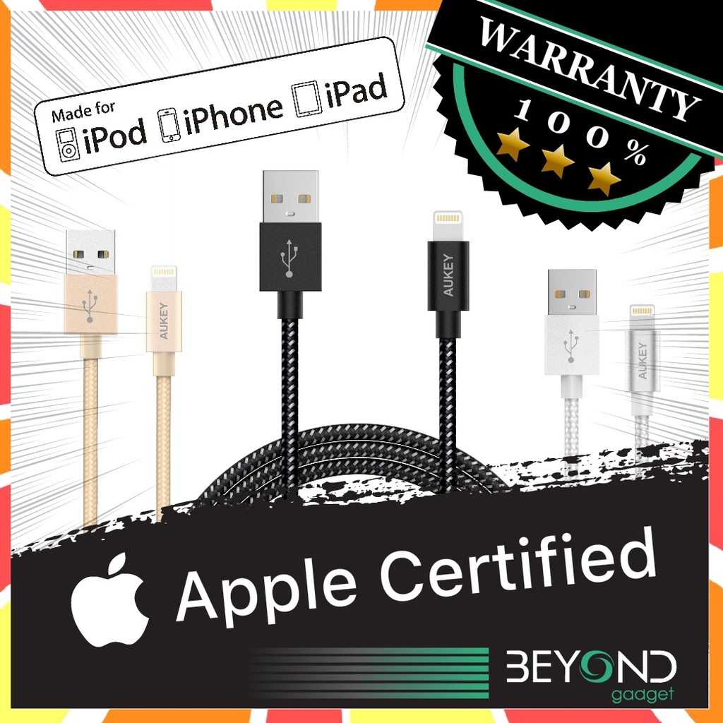 ขาย ราคานี้ 4 วัน ด่วน สายชาร์จ Aukey MFI Braided Lightning iPhone/iPad Cable สายถัก ราคาถูกส่งฟรีทั่วประเทศ