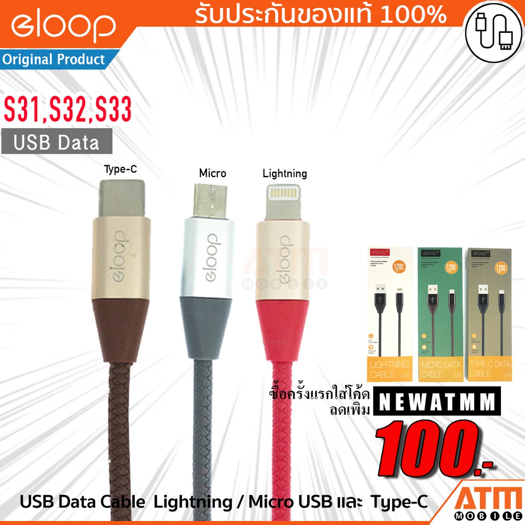 Eloop สายชาร์จ รุ่น S31,S32,33 สาย USB Data Cable Lightning / Micro USB และ Type-C หุ้มด้วยวัสดุป คุณสามารถสั่งซื้อ Eloop สายชาร์จ รุ่น S31,S32,33 สาย USB Data Cable Lightning / Micro USB และ Type-C หุ้มด้วยวัสดุป ด้วยการสั่งซื้อออนไลน์ผ่านเว็บไซด์ตลอด 24 ชม.