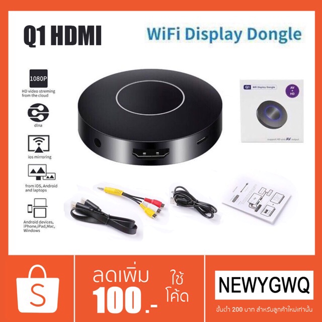 - HDMI hdmiแบบไร้สาย Dongle Q1 แชร์หน้าจอมือถือขึ้นทีวี อุปกรณ์มือถือ Wifi Dongle Anycast ซื้อที่ไหน