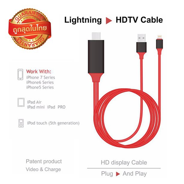 Product details of Iphone to HDTV Cable สายแปลง Iphone เป็น HDMI Iphone to HDTV Cable สายแปลง Iphone เป็น HDMI -ใช้งานง่ายแค่เสียบก็ใช้งานได้เลยไม่ต้อง setting -ออกแบบให้สวยและทนทาน -สามารถชาร์จแบตเตอร์รี่ไปในตัวระหว่างดูและเล่นได้ -ตัวสายยาว 2 เมตร ไม่ต้องลุกนั่งไปเปลี่ยนใกล้ๆปลั้ก -สามารถเล่นได้You Tube / fackbook -รองรับภาพระดับ Full HD 1080P -ใช้ได้กับ iPhone 5/5s/5c/5SE , iPhone 6/6s , iPhone 6 plus /6s plus , iPhone 7/7 plus , iPad Pro , iPad air , iPad mini/mini 2 , iPod Touch 5 Gene