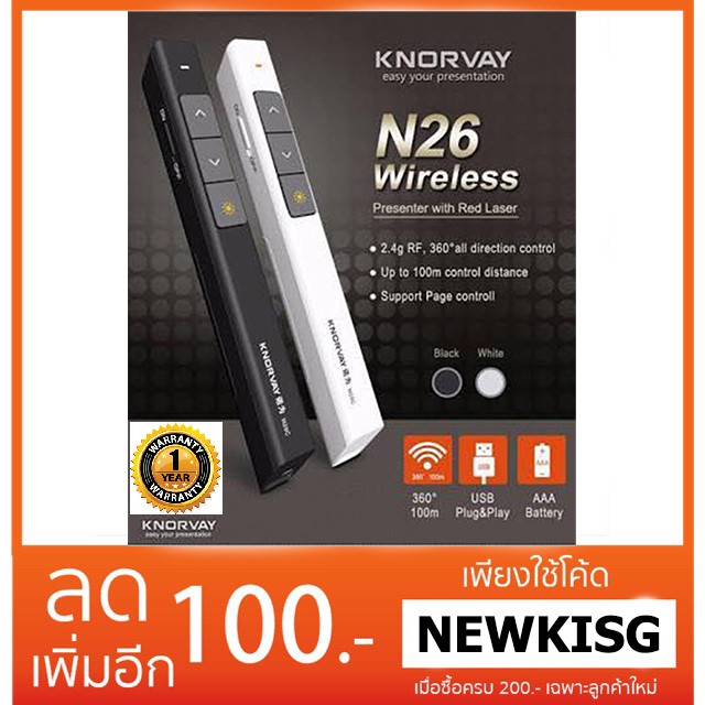 แต่การเลือกซื้อสินค้าในเว็บออนไลน์ ควรเลือกซื้อสินค้าในเว็บที่มีชื่อเสียง ให้ข้อมูลครบถ้วน และควรอ่านรีวิวสินค้า เพื่อให้แน่ใจ ว่าเป็นสินค้าที่ดี เพื่อความคุ้มค่า ก่อนการตัดสินใจซื้อ เราแนะนำว่า คุณควร ดูราคา คุณภาพ รายละเอียด หรือไม่ ถ้าเกิดซื้อมาแล้ว สินค้าชำรุด เคลมได้หรือไม่ มีระยะเวลาในการ การันตีเท่าไหร่. หากลูกค้าอยากได้การเช็คข้อมูลเพิ่มเติมของ Knorvay Wireless Presenter with Laser Pointer N26C รีโมทพรีเซนต์ไร้สาย พร้อมเลเซอร์แสงสีแดง จากร้านค้าออนไลน์ที่น่าเชื่อถือมากที่สุด และ ได้รับความนิยมมากในขณะนี้ กดลิ้งได้เลย