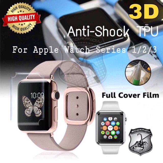 ฟิล์มกันรอย Anti-Shock TPU เต็มจอ สำหรับ Apple Watch 38,42 mm สินค้าAppleWatch ลูกค้าสามารถกด=>scorpionapplewatch โปรโมชั่นลดพิเศษ จาก 100฿ ซื้อ 2 ชิ้นขึ้นไปลดอีก หมดเขตเดือนนี้ ป้องกันรอยขีดข่วน เนื้อฟิล์มเหนียวมาก ไม่ทิ้งคราบ สำหรับ Apple Watch Series 1/2/3 ขนาด 38,42mm PS: หลังติดตั้งอาจจะมีฟองอากาศเหลือเล็กน้อย ปล่อยไว้ 2-3วัน จะค่อยๆ หายไปเองครับ applewatch ฟิล์มกันรอย ฟิล์มAppleWatch สายapple สายapplewatch