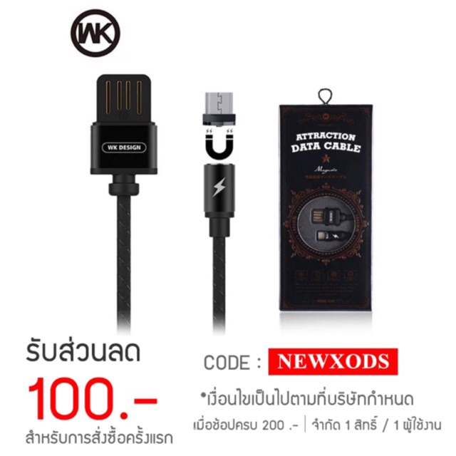 WK Attraction WDC-046 สายสายชาร์จหัวแม่เหล็ก 360 องศา มีรุ่น iphone, sumsung,Type-c (ของแท้100%รับปร ลดราคา