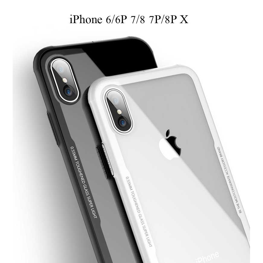 เคสกระจกนิรภัย สำหรับ iPhone 6/6plus/7/7plus/8/8plus/X ด้านหลังเป็นกระจกนิรภัย หนา 0.55 มม. (แบบเดียวกับฟิล์มกระจก) ความแข็งระดับ 9H สามารถทนต่อการกระแทก และ รอยขีดข่วน ได้เป็นอย่างดี เคสไม่ดูดเครื่อง ส่วนขอบทำจาก TPU กันกระแทกได้ดี ไม่ดันฟิล์ม 3D สามารถชาร์จกับที่ชาร์จไร้สายได้เลย ไม่ต้องถอดเคส