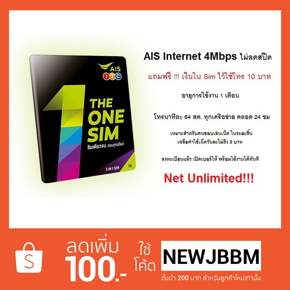 บริการจัดส่งทั่วประเทศ สั่งซื้อผ่านเน็ต รอรับ ซิมเทพ - AIS เน็ตไม่อั้น ความเร็ว 4Mbps ไม่ลดสปีด 1 เดือน ที่บ้านได้เลย